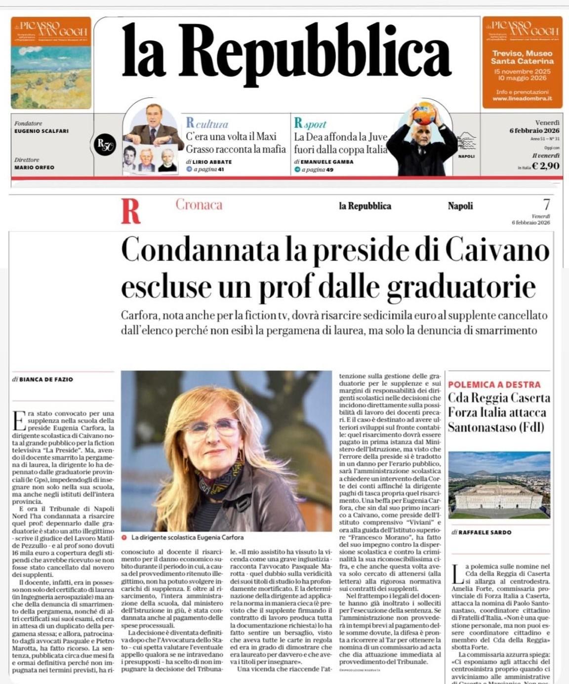 Condannata la preside di Caivano: escluse un prof dalle graduatorie – la Repubblica https://share.google/2NfXcgqhmus4YKCJx